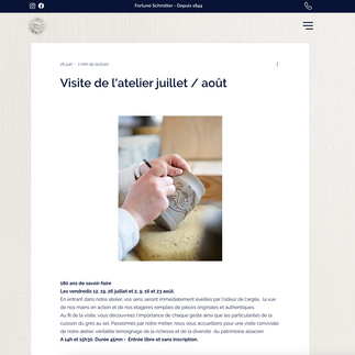 [Nouveau site marchand]Clément Vigneron25 juil. 20241 min de lectureAdresse du site : https://www.poterie-schmitter.com/Client : Poterie SchmitterNature de l'activité : Potiers alsaciensLocalisation : Grand-EstLancement : Juin 2024